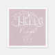 Hello decorative script dusty blue it's a girl napkin