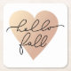 This design features the phrase "hello fall" written in a delicate, flowing script font. The text is centred over a large, soft-coloured heart, which serves as a background element that adds warmth and a touch of charm. The heart is a gradient of autumnal shades, blending from a light golden beige at the top to a deeper, warmer tone at the bottom, reflecting the gentle transition of the fall season. The minimalist yet elegant design exudes a cosy and welcoming vibe.