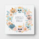 Hello Fall Pumpkin Skull Halloween Floral Modern Plaque