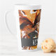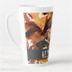 Stylish latte mug features photograph of Autumn coloured fallen leaves in a puddle  with "Hello Fall" customisable text overlay