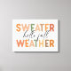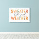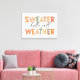 This vibrant fall artwork perfectly captures the cosy essence of the season with its playful typography and warm colour palette. The design features the bold phrase "Sweater Weather" in large, blocky letters that alternate in shades of orange, beige, green, and brown, evoking the changing colours of autumn leaves. The phrase "hello fall" is nestled in between, written in a flowing, cursive script that adds a touch of elegance and warmth to the design.