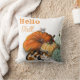Vibrant Hello Fall Throw Pillow with whimsical Cat and Mouse amongst pumpkins