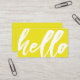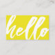 A lighthearted and fun Sunshine yellow business card featuring a "hello" script on the front. On the reverse side is a spot for your unique business information.