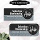 Add a welcoming badge to employees, staff, volunteers or other personnel. This professional name tag features all text in white with a faux tread plate bottom half background and black top half. The name is set on the chequered plate with business name, school name, or job title below on the black half. On the right is a template "Hello" greeting in the circle which you can keep or can be shortened to Hi. Personalise the text fields or edit using the design tool to select a font style, size, and colour you prefer.