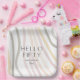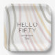 Hello fifty, simple, 50th birthday paper plates. Simple, abstract wavy pastel lines and customisable greeting will elevate the 50th birthday party decor. Create a modern and unique 50th birthday party with the designs in the Modern Simple, Hello Fifty Soft Abstract Waves Collection in The Gathering Designs store.