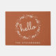 Welcome your visitors with this stylish terracotta doormat featuring a simple floral wreath around the world Hello. Personalise it with your name.