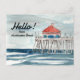 Hello from Huntington Beach greetings featuring a hand drawn illustration inspired by the red roof restaurant at the end of the pier and gentle waves coming into shore drawn with ink and painted plein air with watercolor.