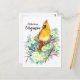 A "Hello from Virginia" postcard decorated with a female cardinal bird in a blooming dogwood tree illustrated with ink and watercolor. Inspired by the state bird and state flower of Virginia. You can add text to fit your needs.