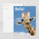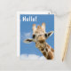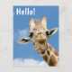 Funny design features photography of Giraffe animal with white text "Hello" .