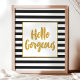Hello Gorgeous Black & White Gold Glitter Stripes Poster