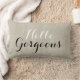 Rustic yet contemporary chic design, with black script text. Motivational throw pillow with the words "Hello Gorgeous". A PRINTED beige linen photo effect background. Linen Look Custom Lifestyle Encouragement - Positive Advice - Throw Pillow - For Your Home Decor Solutions. Elke Clarke© More styles and colours available in our shop at www.zazzle.com/monogramgallery. Great for your bedroom, favourite chair, as fun decor in your family room or formal decorative addition to your living room.