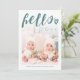 Adorable Happy New Year card with "hello" and a little heart written in a green hand lettered script over your own photo. The back features a matching white and green striped pattern.