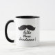 Hello there handsome funny coffee mug design. This humourous message mug with cute moustache graphic is ideal gift for boyfriend husband partner friend and can be further customised with personalised puns and memes.