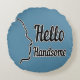 Hello Handsome Typography and Face Profile Outline Round Cushion