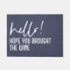 Funny Blue Hello! Hope you brought Wine, Quote Doormat