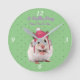 I bought the clock as a 'first time' grandmother. When I opened the package, I cried. the workmanship, material, color and the opportunity to personalize it was just perfect. I know that my grandson will be able to quickly learn to identify numbers, count and tell time! What a keepsake! I was totally happy with the printing, color choice and overall presentation of the clock!