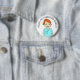 Introduce yourself to your patients or client with this easy to read name button. Cartoon drawing of a Caucasian red head female nurse, physical therapist or caregiver in pink light blue scrubs.