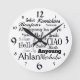 This artistic, funky and unique wall clock features greetings in 18 different languages from around the world. Specifically the words are translations from the English word "hello" and each is written in a different style of font.