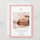 Simple, classy, modern and elegant baby girl "Hello Little One" in pink and white on front and back Birth Announcement. Simply add your precious baby's photos and details to complete this design. Composite design by Holiday Hearts Designs (rights reserved).