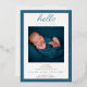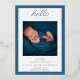 Simple, minimalist, modern and elegant baby boy "Hello Little One" in ocean blue and white with real foil accents on front Birth Announcement. Back features an additional photo template and text with no foil accents. Simply add your precious baby's photos and details to complete this design. Composite design by Holiday Hearts Designs (rights reserved).