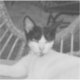 A black and white photograph of a cat with a sexy look. Taken from Las Pinas, NCR, Philippines.
