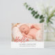 Modern and elegant photo card to announce the birth of your new baby to the world. Fully customisable with your baby's picture, name, birth stats and other details. Editable colours and customisable dotted background.