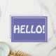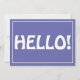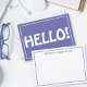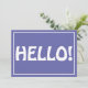 "Hello", a modern, simple, minimalist, trendy way to say I'm thinking of you, and want to keep in touch! Hello is in white on a trendy periwinkle blue background in a single white frame. Back of card is white with a matching frame and accented with a line of matching text to add your custom name, phrase (or delete).