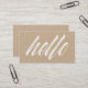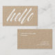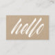Make an approachable impression when you network with custom business cards featuring the word "hello" in a modern white cursive script font on the front of the rustic kraft card. The business card back features your name, job title/speciality/company, website, and contact information in white text. Replace the sample text with your own in the sidebar.