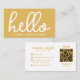 This minimal and professional business card is perfect for any profession. It features handwritten script typography with the phrase, "Hello, my name is." The colour scheme includes white and mustard yellow. It's classy, stylish, modern, contemporary, unique, and cool, the perfect design to get your customer's attention.