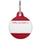 Is your dog a suave, handsome cowboy one minute and a ferocious mail-man chasing gangster the next? If your little one flips switches and changes faces more than Lady Gaga changes outfits in a day, then this tag is definitely the right choice. Let your furry friend's face and body language, along with one of our custom dog tags and pet ID tags, say it all. One minute he'll be saying, "Hello my name is Disco Dotson" and the next "Hello my name is Bubba Paws." We will put in your pet's name in a playful font, just under the "Hello, my name is," line. You can let us know in the "comment" box when you checkout what you would like printed on the front of this tag.