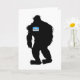 Full sized mysterious Sasquatch silhouette, wearing a traditional blue & white, “Hello My Name Is ___,” badge. With “Sasquatch,” written in the name blank in a simple black handwritten font.