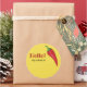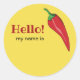 Hello name tag for a chilli cook off or any food event with hot peppers. The text says Hello! my name is, but you can edit it if you like. The yellow background colour can also be changed to another colour. The graphic is of a red chilli pepper. Participants, contestants, or guests can write their name and/or business name in the empty space on the matte finish sticker.