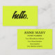 Hello Neon Chartreuse Yellow Typography Modern Business Card