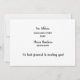 Love that there is a bit of humour with it. Quality card. Really good, clean print job