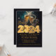 Hello New Year Black Gold Modern Custom Add Year Invitation 2024