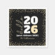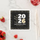 “Hello 2026. Good riddance 2025.” Sometimes, the new year can’t come quickly enough. And this is one of those years. A playful visual of modern, bold, white, graphic block typography and faux gold glitter elegant script calligraphy and dots over black, help you usher in the New Year. Feel the warmth and joy of the holiday season whenever you use this stylish and modern personalised name and year party paper napkin. Choose from cocktail, luncheon and dinner sizes. Matching and coordinating cards, envelopes, stickers, giftwrap, plates and other products are also available. Makes a fun and festive addition to your party!