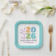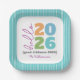 “Hello 2026. Good riddance 2025.” Sometimes, the new year can’t come quickly enough. And this is one of those years. A playful visual of modern, bold, colourful, graphic block typography and elegant calligraphy script on a white background, bordered by hand drawn white lines on turquoise, help you usher in the New Year. Feel the warmth and joy of the holiday season whenever you use this stylish and modern personalised name and year party paper plate. Your choice of 2 sizes: 7” or 9”. Matching and coordinating cards, envelopes, stickers, giftwrap, napkins and other products are also available. Makes a fun and festive addition to your party!