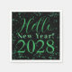 Hello New Year! New Year's Eve Green Black Sparkle Napkin