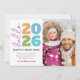 “Hello 2026. And it’s about time.” Sometimes, the new year can’t come quickly enough. And this is one of those years. A playful visual of modern, bold, colourful, graphic block typography and elegant script calligraphy, next to the photo of your choice, help you usher in the New Year. White hand drawn lines overlay aqua blue on the back. Feel the warmth and joy of the holiday season whenever you send this simple, stylish, personalised greeting card. Send this to someone special, especially someone with a sense of humour!