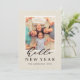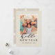 Hello New Year Rustic Faux Burlap Texture Photo Holiday Card