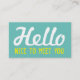 "HELLO Nice to meet you" Teal Grunge Font Business Card