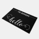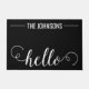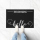 Doormat design features the word HELLO in a pretty script font. Just personalise with your famiy name for a unique welcome mat. Perfect for decorating or giving as a housewarming gift.