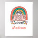 Personalise this Hello Pre-school poster with her name. Rainbow design with hearts. Cute and colourful.