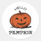 Hello pumpkin jack-o-lantern illustration, Black Classic Round Sticker