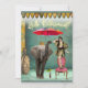 A fun and funky altered art vignette featuring vintage flapper girl on chair, an elephant holding an umbrella, and "Hello Retirement" in neon text. Perhaps it's just what they've been dreaming of...