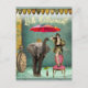 A fun and funky altered art vignette featuring vintage flapper girl on chair, an elephant holding an umbrella, and "Hello Retirement" in neon text. Perhaps it's just what they've been dreaming of...