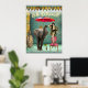 A fun and funky altered art vignette featuring vintage flapper girl on chair, an elephant holding an umbrella, and "Hello Retirement" in neon text. Perhaps it's just what they've been dreaming of...