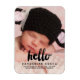 Simple Photo Baby Birth Announcement Magnet for a boy or girl. Elke Clarke © Other colours and styles available in our shop at www.zazzle.com/monogramgallery. Black script with the word "hello" photo overlay design.
