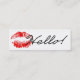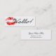 "Hello!" in simple script and red lipstick mark, against white background. Simple and elegant black and white business card for business or personal use.