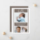 Simple, classy and modern "Hello" dark greige and white baby boy birth announcement. Composite design by Holiday Hearts Designs (rights reserved).